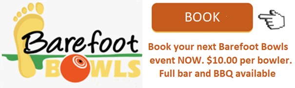 Friday Barefoot Bowls - Always available for sporting clubs, work groups, beginners, families and Corporate Events from December to April on a Friday between 4.30 - 8.00pm. Drinks at members prices. There are bowls available to use and Members will demonstrate the skill and assist your game. For a great time just click this link .